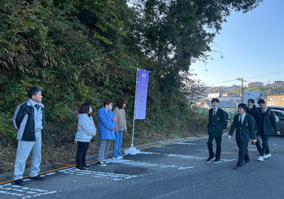 PTA健全育成委員の活動として、11月4日(火)本校坂下にてあいさつ運動を行いました。寒空の下、登校してくる生徒に挨拶などの声掛けをしました。