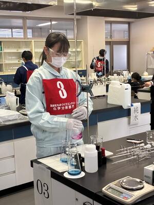 大会の課題は『水溶液中に含まれるカルシウムとマグネシウムの定量分析』。検水と呼ばれるサンプルの硬度を調べ、作業の技術や制度を競う競技となります。放課後や休日も練習に励んできた結果、本校生徒は1位と4位に入賞しました。2年連続1位という結果は宮城県大会(化学分析部門)において初とのことです。