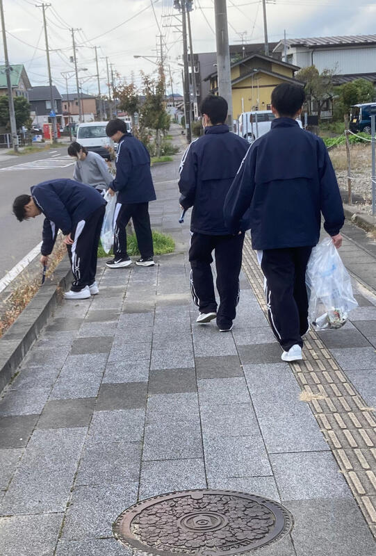 11月3日(月)の午前中に、昨年度に引き続き白石高校バレーボール部のみなさんと合同で、「地域清掃活動」を実施しました。白石工業高校から白石蔵王駅までの道を2つのグループに分けて歩き、道沿いに落ちているゴミ拾いをおこないました。