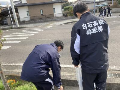 白石工業高校バレーボール部・白石高校バレーボール部合同で「地域清掃活動」をおこないました。