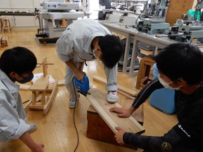 今年度は,コンペ班,模型班,木製玩具班,白工祭制作班,修繕班,組子班に分かれて学習活動に励み,活動の集大成として発表会を実施しました。3年生全員が,この日のために入念に準備を行い,堂々とした姿で自信をもって発表していました。観覧した2年生も3年生の素晴らしい発表の様子に感動し,次年度に向けて気を引き締めている様子が伝わりました。また,組子班で御指導いただいた「小野建具店 小野富雄様」と木製玩具班で御指導いただいた「株式会社シマヌキ建工 坂元啓太様」にも御参観いただき,次年度に活動する2年生に向けて助言をいただきました。