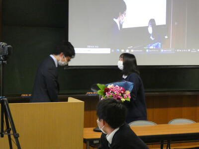 白建会会長の益田俊道 様(23回生)にお越しいただき,白建会入会式を実施しました。会長から3年生に向けて入会証が交付され,本校を卒業後には会員として白建会を支えていくことになります。令和3年度卒業生(58回生)の今後ますますの活躍を期待しています。