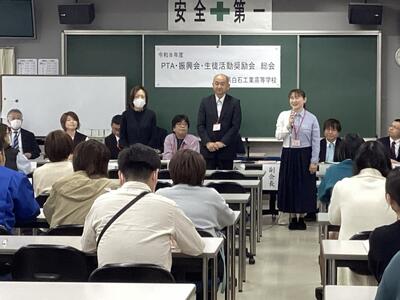 4月17日(金)、授業参観後に本校機械科融合実習室を会場として、PTA・振興会・生徒活動奨励会総会を行いました。